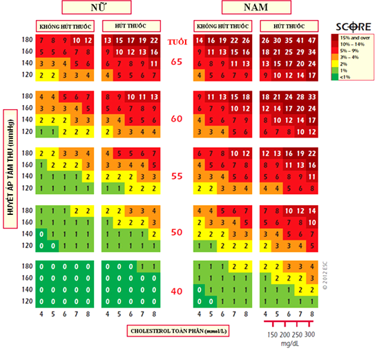 · Điểm SCORE ước tính cho nguy cơ tử vong tim mạch trong 10 năm ≥ 5% và < 10%.